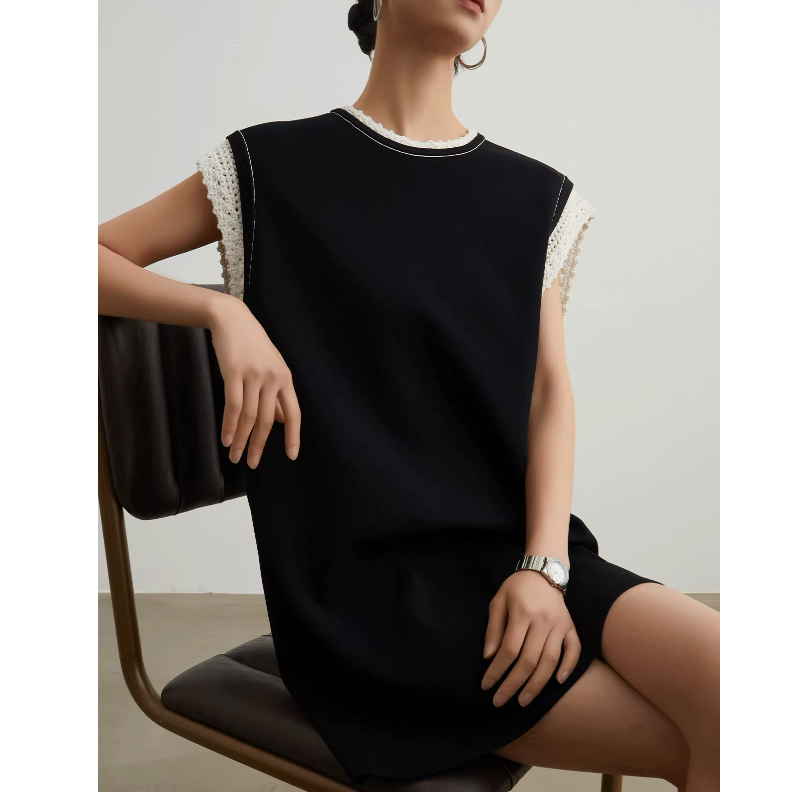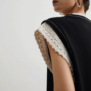 華やかな刺繍レースが施されたデザインは、特別な日のイベントやお出かけに最適で、あなたの個性を際立たせます。軽やかな素材とシルエットが、クールでありながら女性らしさを演出する一着です。