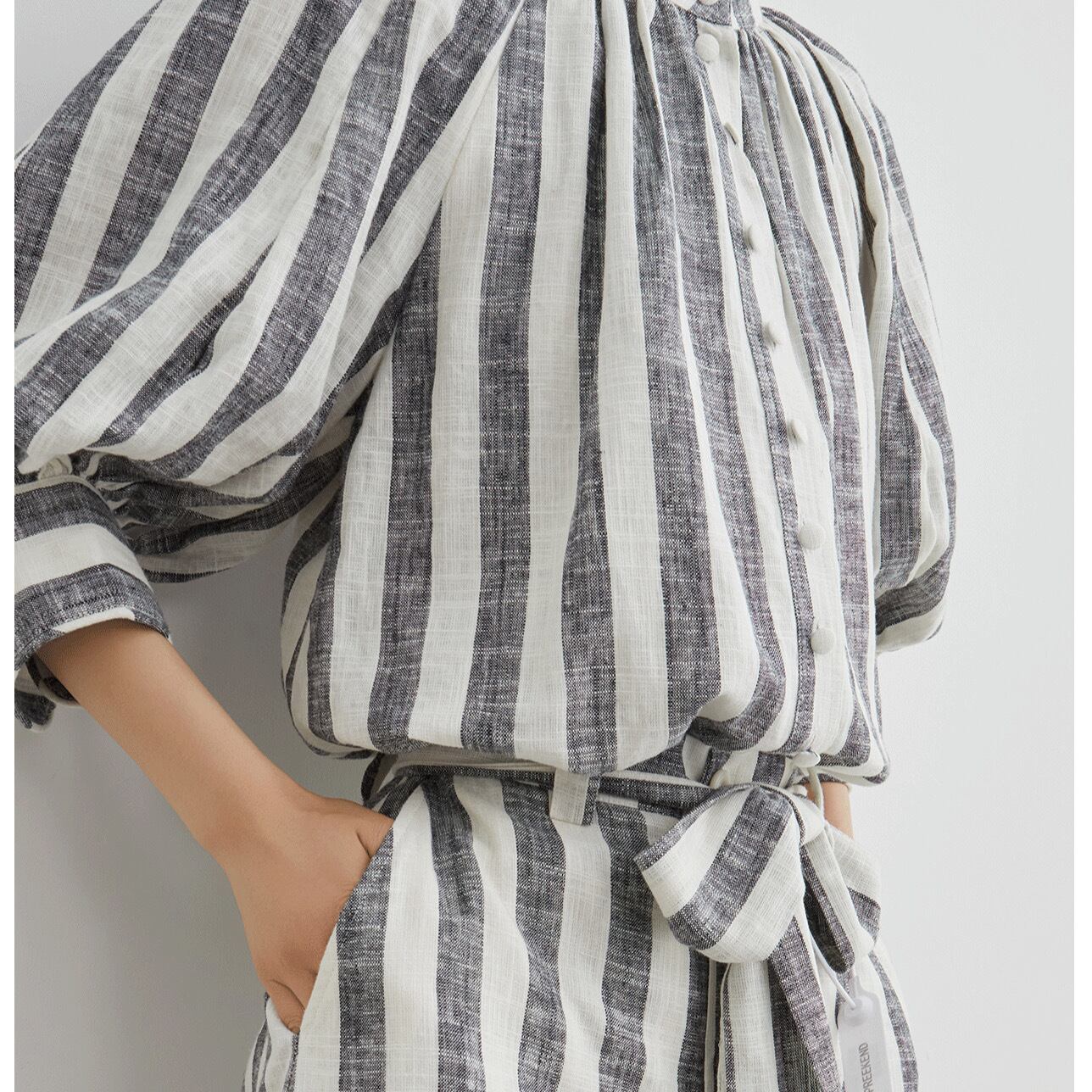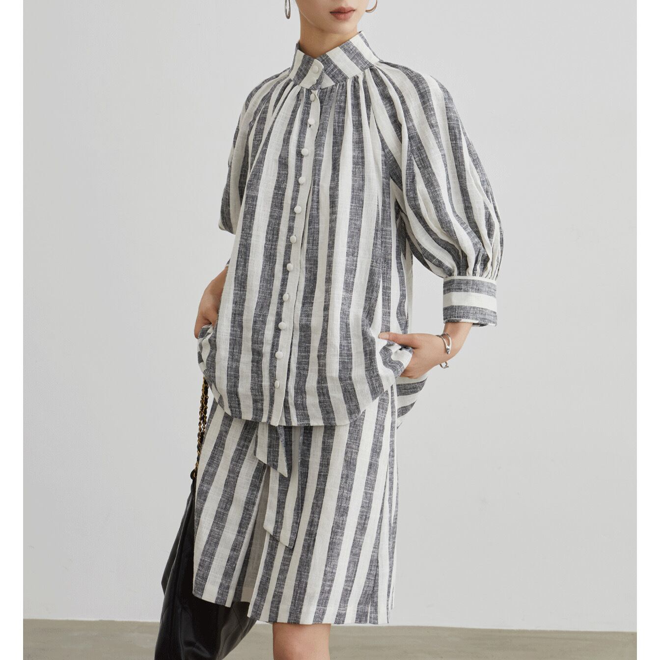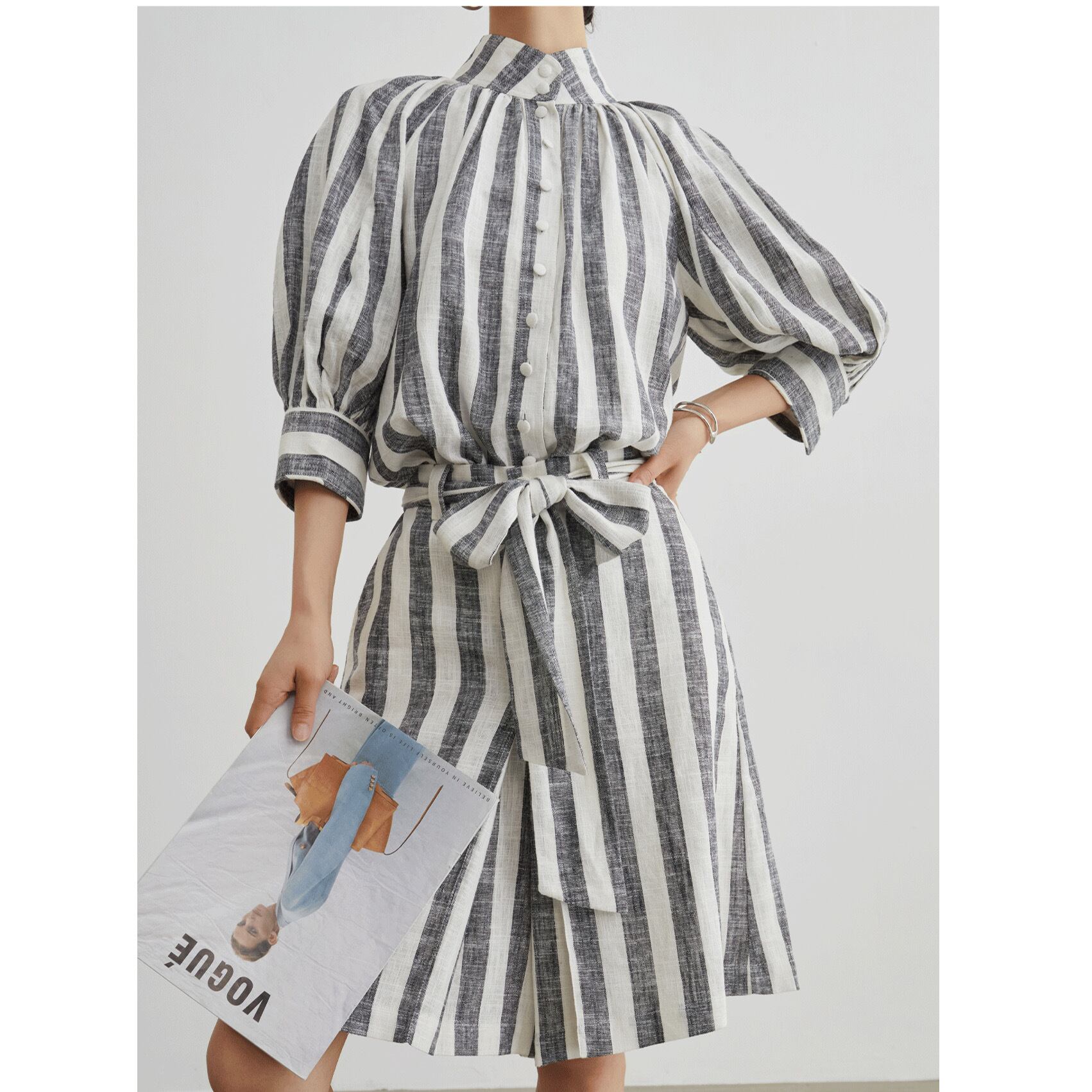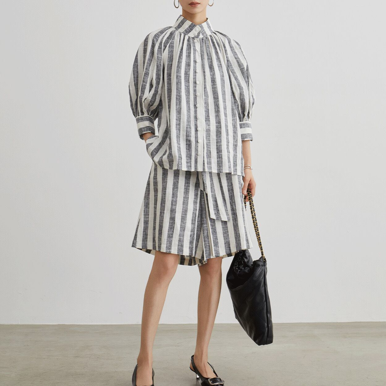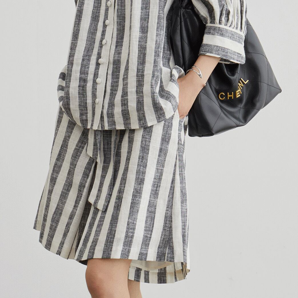 シックなモノトーンのストライプが目を引く、ハーフパンツです。ゆったりとしたシルエットとリラックス感のある着心地と洗練された大人の雰囲気を両立させます。