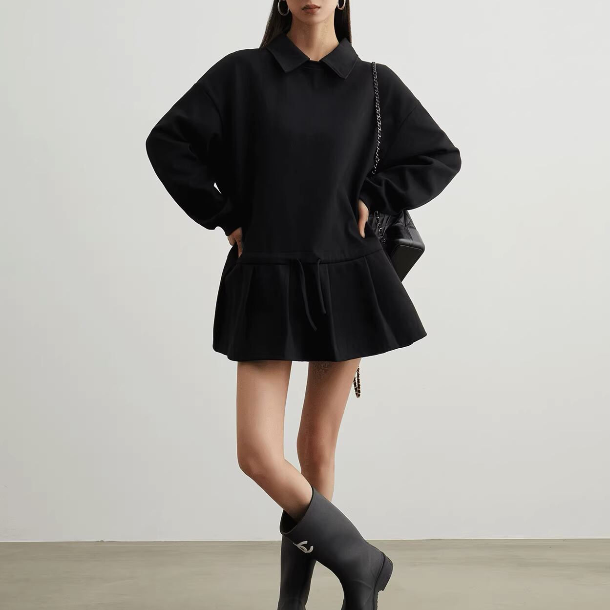 トレンド感あふれるぺプラムシルエットのスウェットワンピースです。柔らかなコットン素材がもたらす着心地の良さと、ゆったりとしたシルエットでリラックスムードが漂います。ウエスト部分に施されたぺプラムデザインが、さりげなく女性らしさを引き立てます。