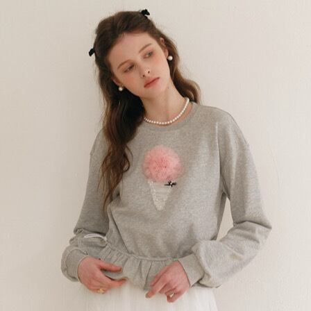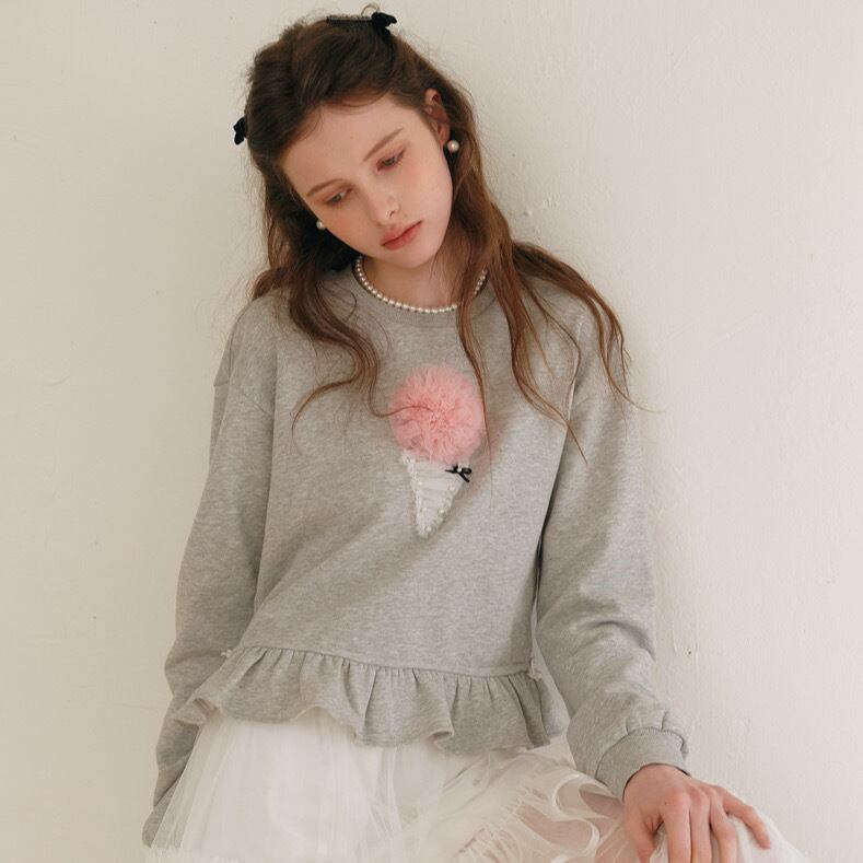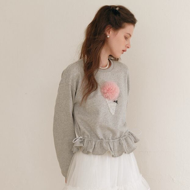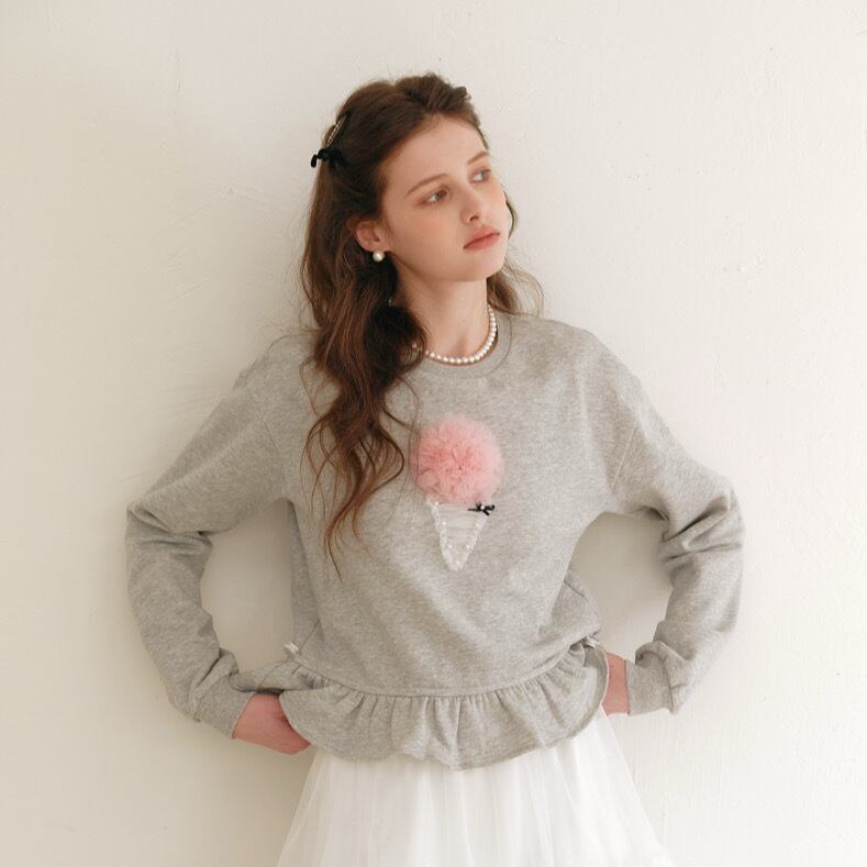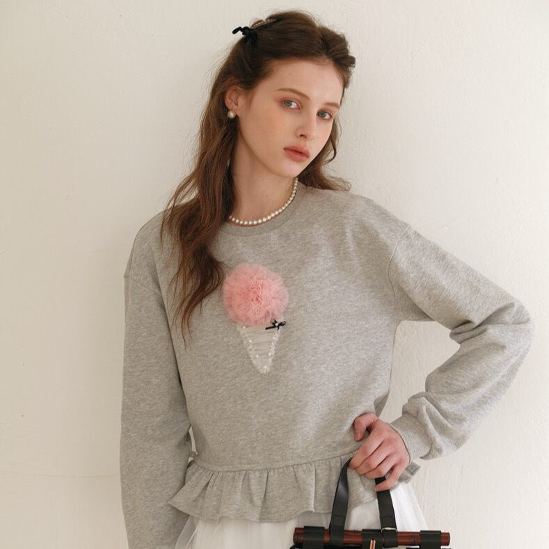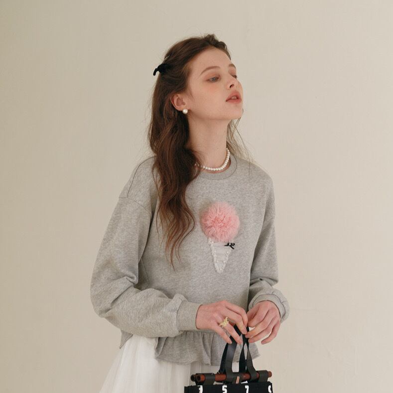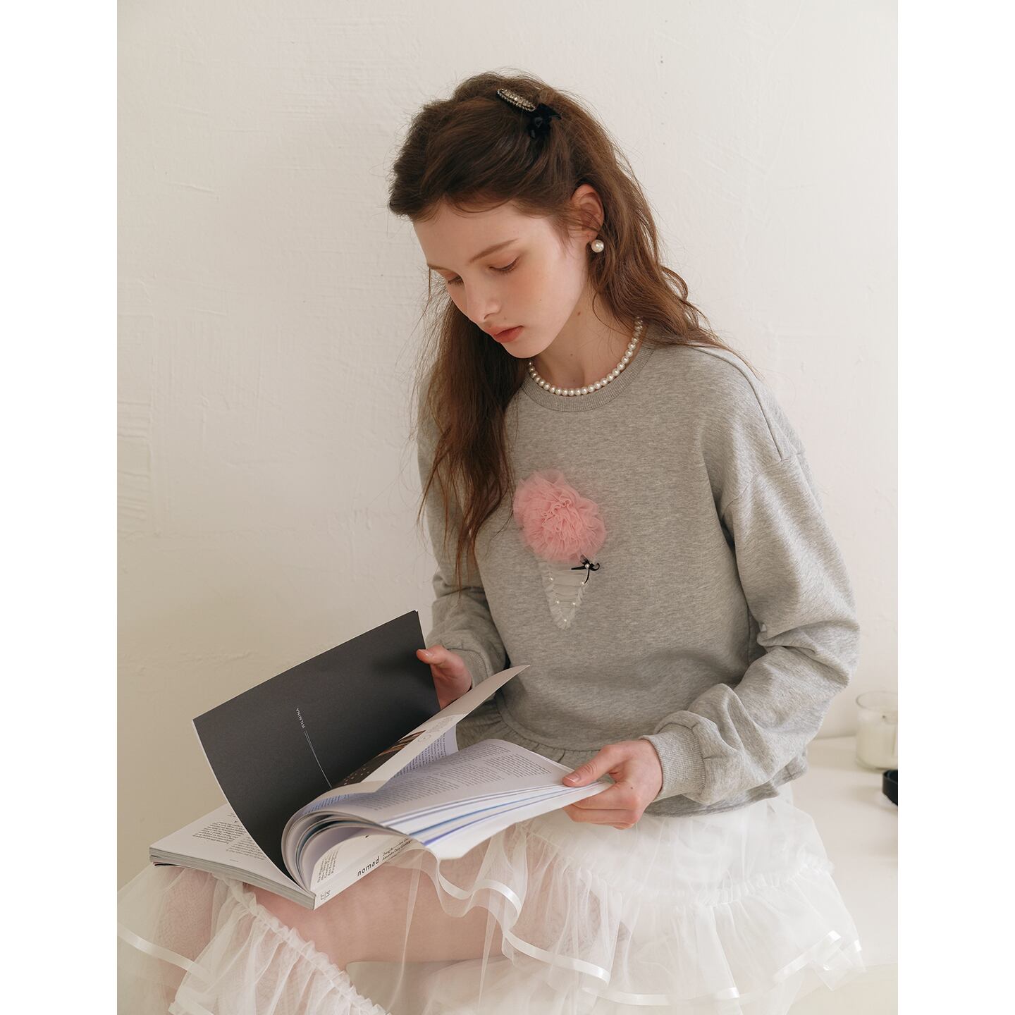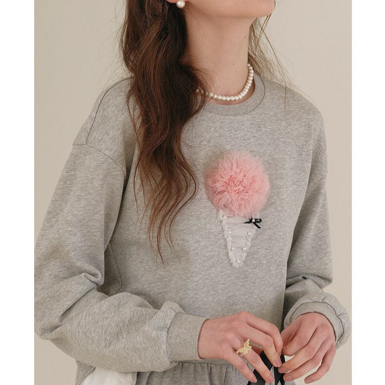 一目で心奪われる、立体的なチュールの「アイスクリーム」をトッピングしたスペシャルなスウェット。