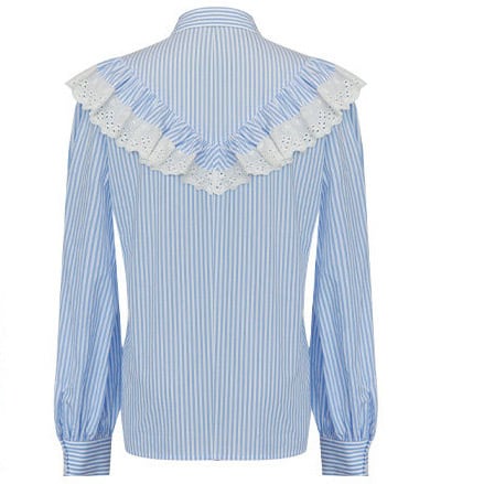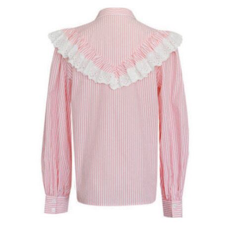 凛としたストライプ生地に、繊細なアイレットレースを贅沢にあしらった、ヴィンテージライクなブラウスです。
