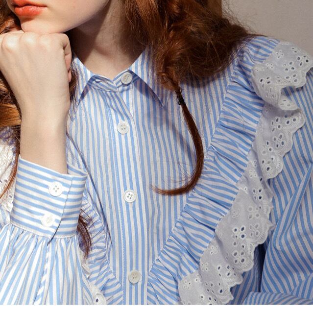 フレンチ ストライプ アイレット レース シャツ 【2color】64T35